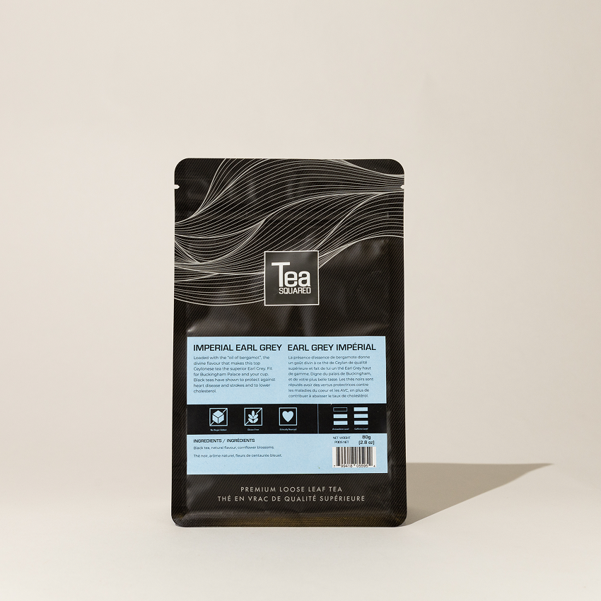 Meet Tea Squared's Imperial Earl Grey Tea. It's a superior Earl Grey tea that’s truly fit for Buckingham Palace and your cup. This exceptional Ceylon-based Earl Grey is loaded with the divine “oil of bergamot” that makes this top Ceylonese tea the ultimate Earl Grey experience, earning rave reviews from customers who call it “quite possibly the best Earl Grey tea” they’ve ever had.